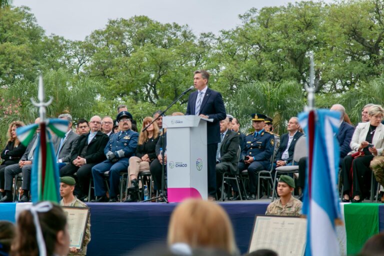 Calderón hizo una mención especial a los 60 chaqueños que fueron parte de la gesta de Malvinas. “El Chaco incluye en la historia 60 héroes, para ellos todo nuestro honor, para nuestros camaradas, para los que lo dieron todo, para aquellos que un 20 de junio juraron defender su bandera hasta perder la vida”.