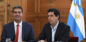 La actividad será a las 19. Se trata de la pavimentación, playa de estacionamiento y obras de señalización e iluminación.El gobernador Jorge Capitanich junto al