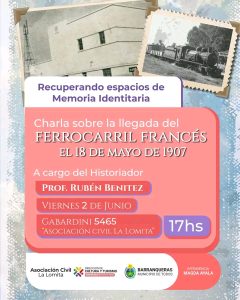 Desde las 17hs, el profesor e historiador local, Rubén Benítez, dará una charla sobre la llegada del Ferrocarril Francés a Barranqueras. Será en la Asociación