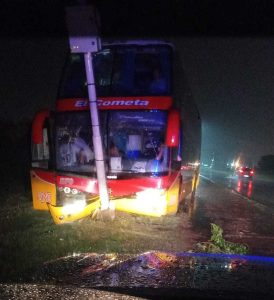 Minutos antes de las 23:00 de ayer, un colectivo de dos pisos para viajes de larga distancia chocó contra un poste de luz sobre el