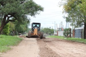 Personal y Máquinas del Área de Riego y Mantenimiento de calles, trabaja en el perfilado de calles y colocación de ripio aprovechando el mejoramiento de