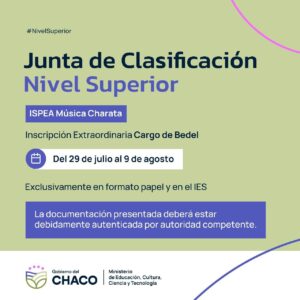 El Ministerio de Educación, a través de la Junta de Clasificación de Nivel Superior, comunica a los institutos de Educación Superior de la provincia y