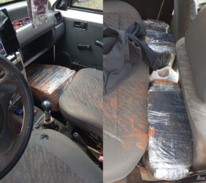 Luego de un seguimiento controlado, los funcionarios lograron interceptar el rodado y constataron que el conductor transportaba 172 paquetes con la droga. Personal del Escuadrón