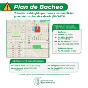 Información sobre los lugares donde se ejecutan los trabajos de bacheo, y los próximos a habilitarse para el tránsito. EN EJECUCIÓN O POR INICIAR TRABAJOS