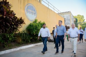 En el complejo de plantas potabilizadoras, ubicadas en la localidad de Barranqueras, el gobernador Leandro Zdero junto al presidente de Sameep Nicolás Diez y al