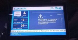 El mensaje fue puesto en las pantallas de las estaciones de tren del área metropolitana de Buenos Aires en la previa a una nueva movilización