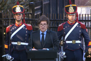 El presidente de la Nación enabezó el acto en Plaza San Martín junto a Bullrich y sin Villarruel. El presidente de la Nación, Javier Milei,