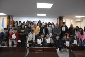 La presidente de la Legislatura, Carmen Delgado, junto a sus partes Samuel Vargas y Carlos Salom, compartieron con 55 estudiantes y profesores de la EES