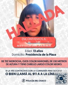 Un efectivo operativo de búsqueda permitió hallar a una menor de Presidencia de la Plaza quien permanecía desaparecida desde el pasado miércoles 20. El dispositivo