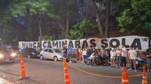 Militantes kirchneristas permanecían este domingo en las inmediaciones del Sanatorio Otamendi, donde la ex presidenta Cristina Fernández de Kirchner fue operada de urgencia por un