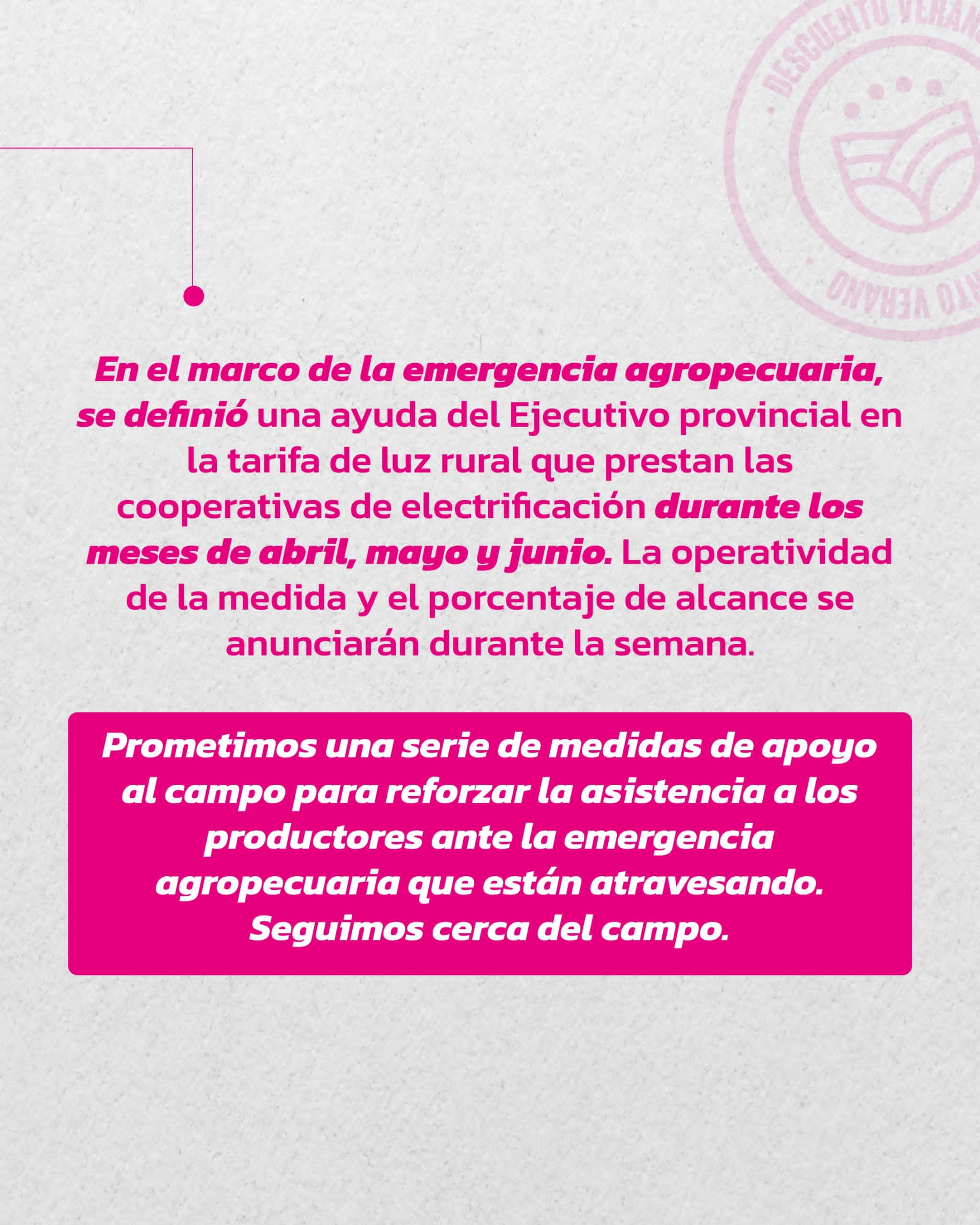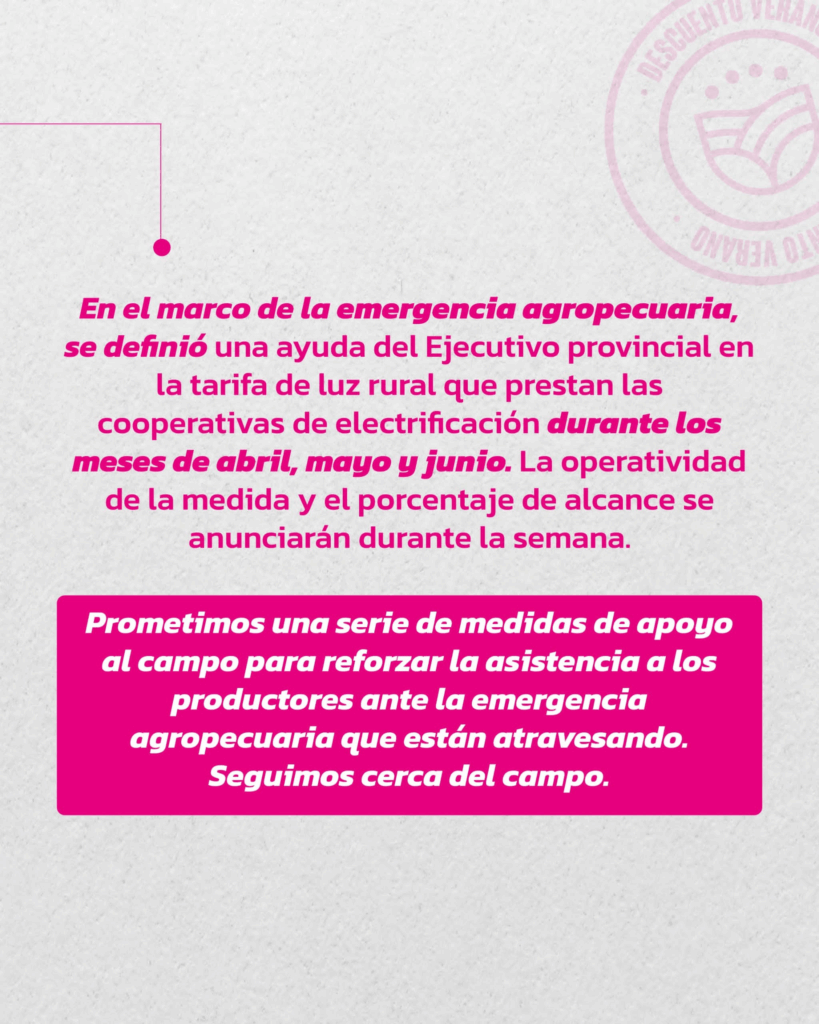 En el marco de la emergencia agropecuaria, el gobierno del Chaco definió una ayuda en la tarifa de luz rural para los meses de abril, mayo y junio.