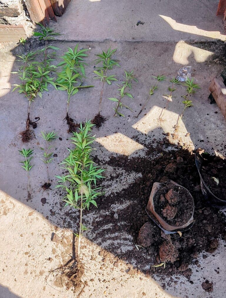 - Nueve plantines de marihuana,