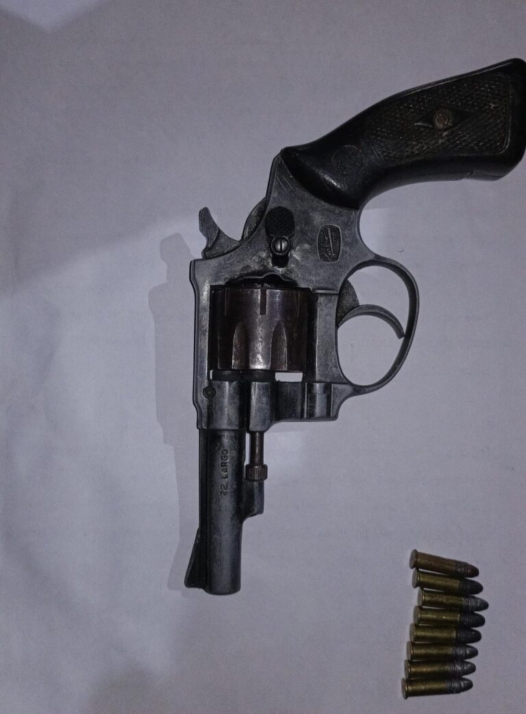 Luego identificaron al conductor de 49 años, este tenía en su poder un arma de fuego tipo revolver calibre 22 mm., con ocho cartuchos.