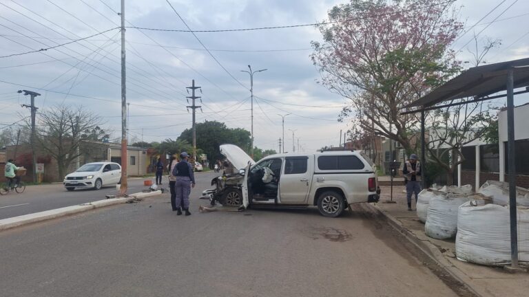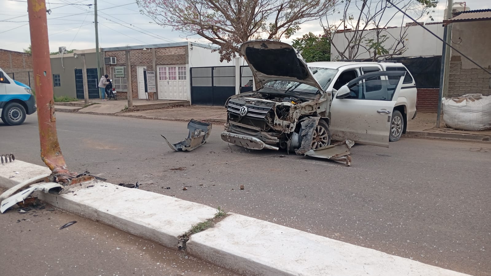 Agentes de la Comisaría Primera de Barranqueras llegaron rápidamente al lugar y constataron que el vehículo involucrado era una camioneta Volkswagen Amarok, la cual había colisionado contra una de las jirafas de luz instaladas en la avenida.
