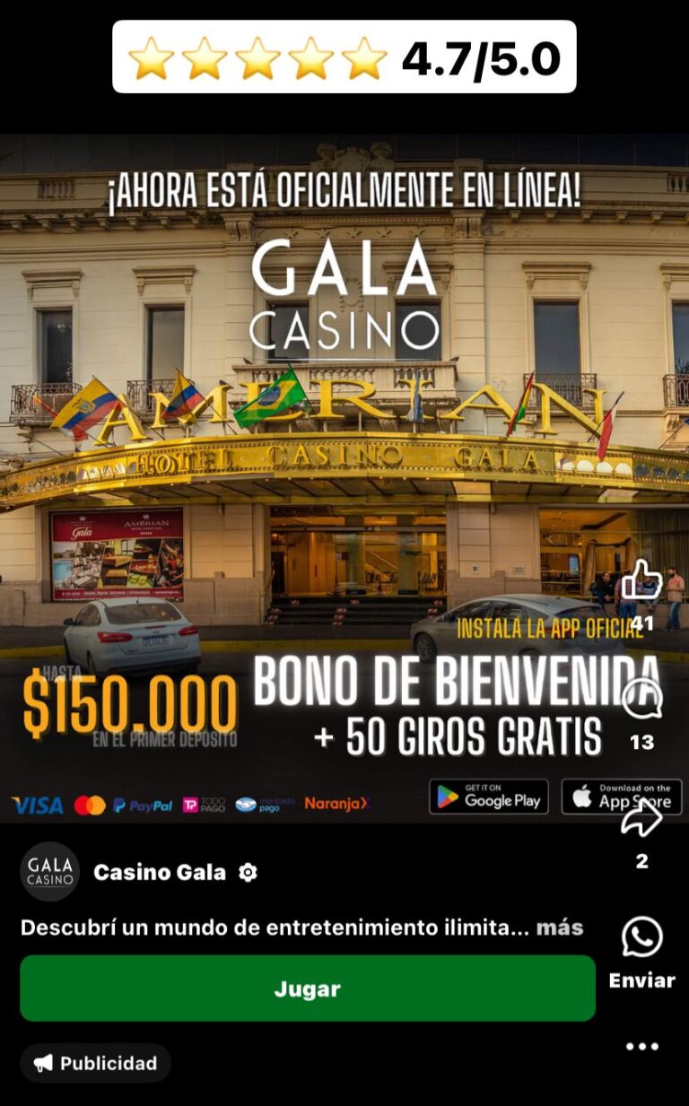 La empresa que opera casinos en la provincia de Chaco emitió un comunicado para aclarar que ya han realizado las denuncias correspondientes. Además recordó que no cuenta con ningún tipo de plataforma de juego online, ni avala ninguna aplicación digital vinculada al Play Store o sitios similares. “Gala nunca tuvo ni tiene presencia en plataformas de juego online. Sólo operamos a través de nuestros canales físicos.