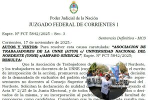 La Justicia federal de Corrientes declaró nulas las elecciones de consejeros nodocentes de la Universidad Nacional del Nordeste (UNNE), en un fallo inédito a favor