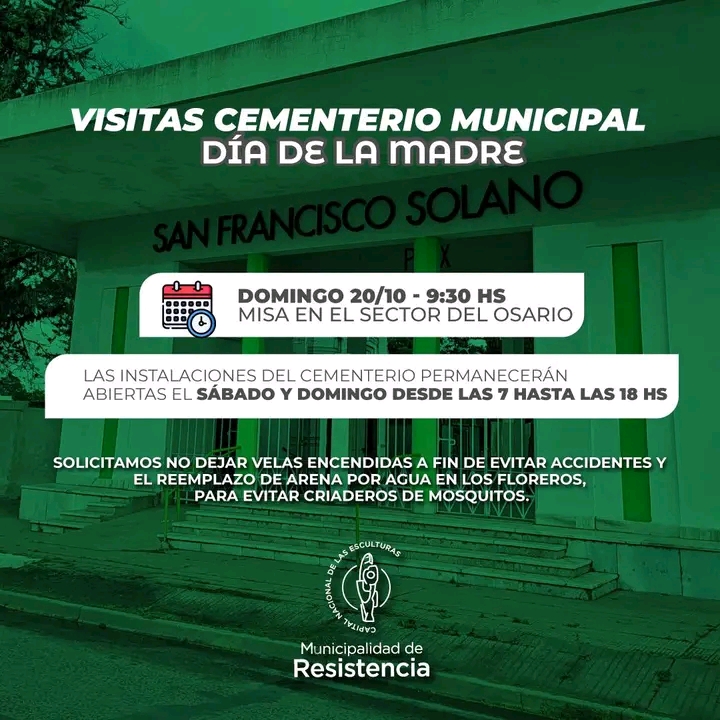 Solicitamos no dejar velas encendidas a fin de evitar accidentes y el reemplazo de arena por agua en los floreros, para evitar criaderos de mosquitos.