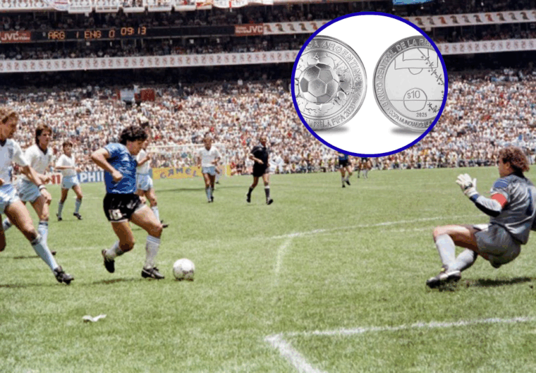 Según el comunicado oficial, el diseño central de la moneda presenta una imagen de una pelota atravesando su superficie. Esta alegoría representa la pasión futbolera que, según el BCRA, constituye un símbolo nacional. La inscripción “REPÚBLICA ARGENTINA” aparece en el arco superior del anverso, mientras que en el sector inferior se ubica la leyenda “COPA MUNDIAL DE LA FIFA 2026TM”. En el reverso, la pieza exhibe el esquema de la jugada emblemática de 1986, detallando la trayectoria de la pelota y los contrincantes que enfrentó antes de llegar a la red.