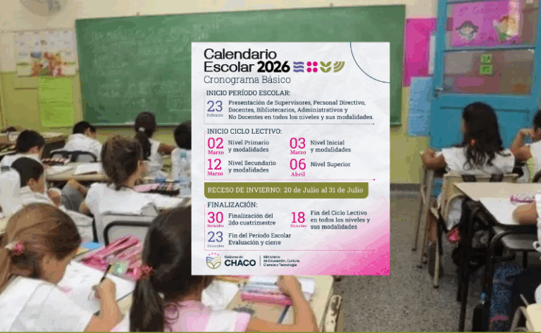 El Ministerio de Educación del Chaco oficializó el Calendario Escolar Básico 2026, que establece el inicio del ciclo lectivo para el 2 de marzo en toda la provincia. El esquema fue diseñado en concordancia con la Resolución 484/2024 del Consejo Federal de Educación, que fija los días mínimos de clases para todo el país.