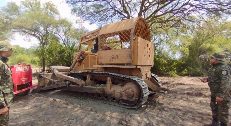 En el operativo fueron secuestrados una topadora Caterpillar D7 con pala y pluma, una casilla rodante color blanco y verde sin nombre ni dominio; un carretón color rojo sin marca ni dominio; un tanque cisterna de un eje de 1.000 litros para agua, sin marca visible; un tanque cisterna de un eje de 1.500 litros para gasoil, marca Ombú y un acoplado de dos ejes, color verde, marca Ambroggio, modelo 2022, con herramientas varias.