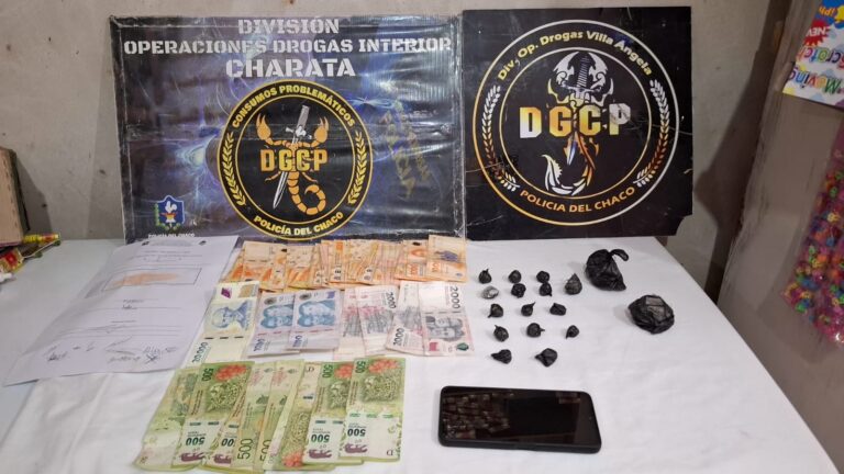El viernes en horas de la tarde, se realizó un procedimiento en un inmueble en la localidad de Corzuela donde allí secuestraron $325.000 en efectivo, dos cámaras de seguridad, un teléfono celular. En otra finca, de esa localidad, aprehendieron a un hombre de 27 y una mujer de 29 años e incautaron 12.6 gramos de marihuana, $110.000 en efectivo, un celular y varios recortes.