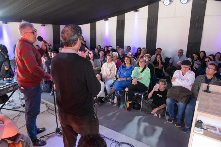 En un gesto de apoyo y reconocimiento, los diputados Nicolás Slimel, Mariela Quirós y Tere Cubells entregaron una carpeta protocolar con una resolución del Poder Legislativo que declara de interés legislativo, cultural y provincial el «Encuentro Madre Canción». Este encuentro, que se desarrolla en distintos puntos del predio de la Bienal, reúne a referentes de la poesía, música, historia, periodismo y otras expresiones artísticas en torno a la canción.