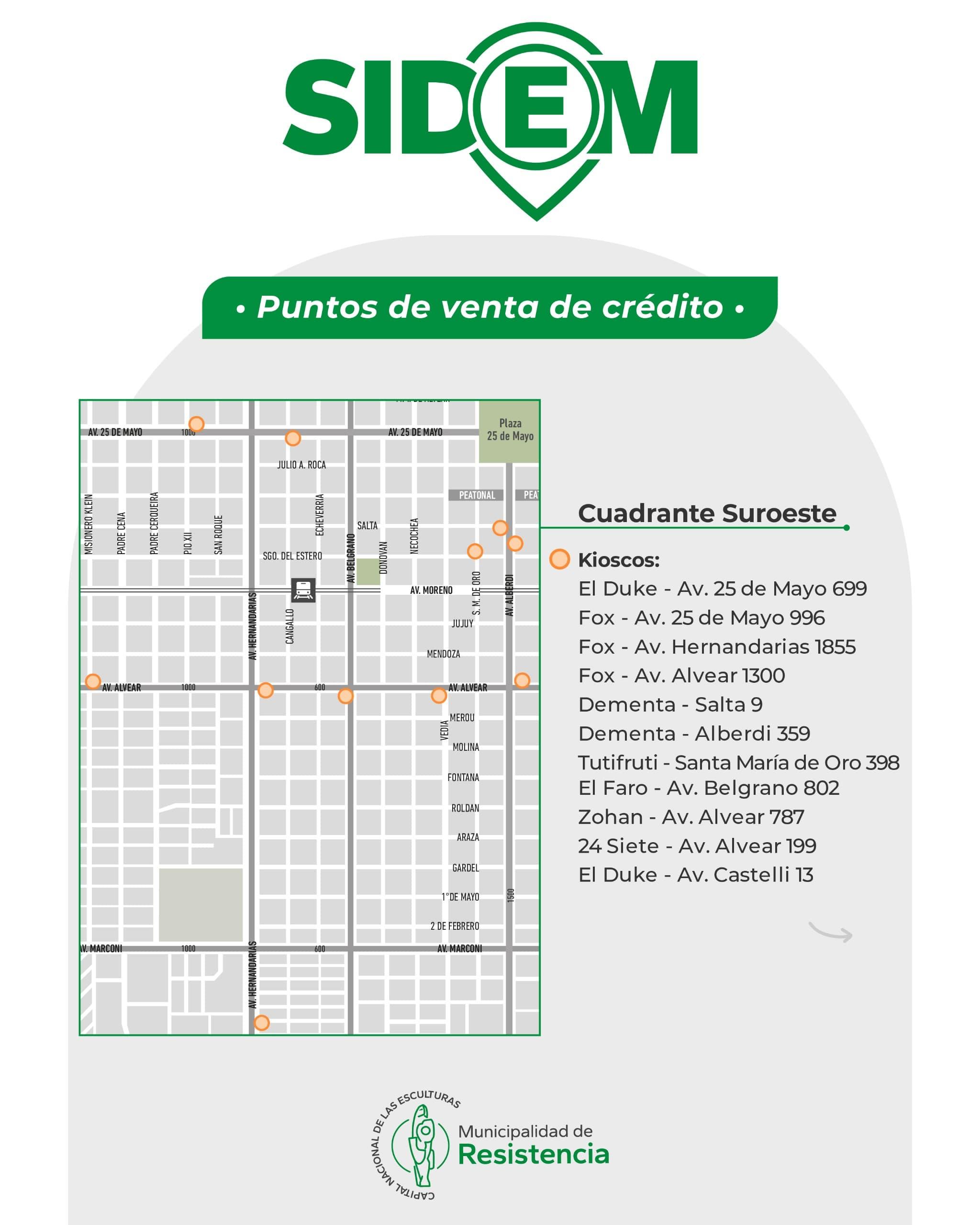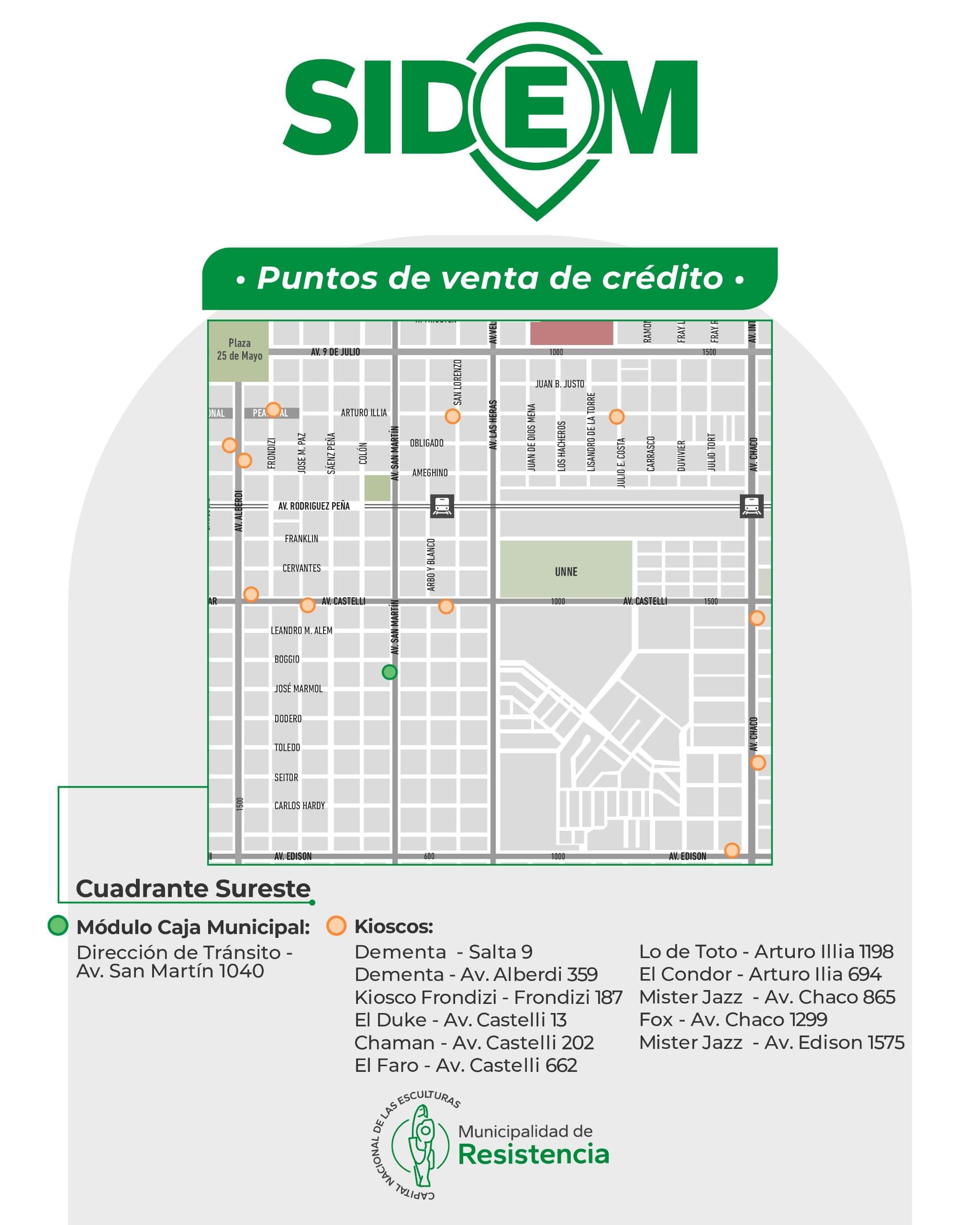 La Municipalidad de Resistencia informa que dispone de un gran número de puntos de venta en diferentes zonas de la Ciudad para la carga de crédito del Sistema de Estacionamiento Medido (SIDEM), que empezó a regir el 1° de abril, en calles y avenidas del microcentro, en el horario de 8 a 12 y de 16 a 20.