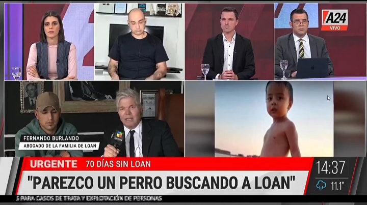 «Nosotros estamos poniendo un gran esfuerzo. Y no lo hacemos por plata, no nos llevamos ni un peso. No sé otros. Y uno tiene que escuchar críticas. He buscado a Loan como un perro. Yo y todo mi equipo de trabajo», destacó Burlando, en referencia a las polémicas transacciones millonarias que recibieron los hermanos del menor.