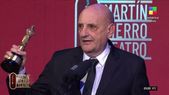 Tras ser premiado con el Martín Fierro a Mejor Actor Protagónico Oficial y quedarse con la estatuilla a Mejor Obra Teatro Oficial, por Cyrano, volvió a subir al escenario pasadas la 1:15, en una ceremonia larguísima, que comenzó alrededor de las 21:45.