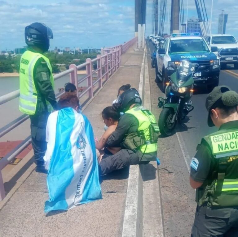 En la tarde de este viernes, una mujer de 34 años fue asistida y rescatada tras intentar arrojarse desde el Puente General Manuel Belgrano, que une las provincias de Chaco y Corrientes. La rápida intervención de efectivos de Gendarmería Nacional Argentina junto a voluntarios de la ONG “Ángeles del Puente” impidió que se concretara el trágico intento.