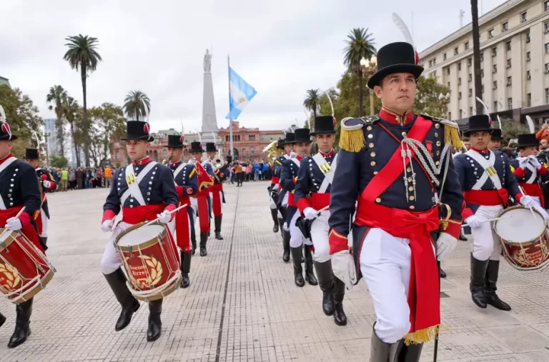 Por primera vez en la historia los regimientos de Granaderos, Patricios y General Iriarte realizaron en simultáneo el cambio de guardia en la Plaza de Mayo