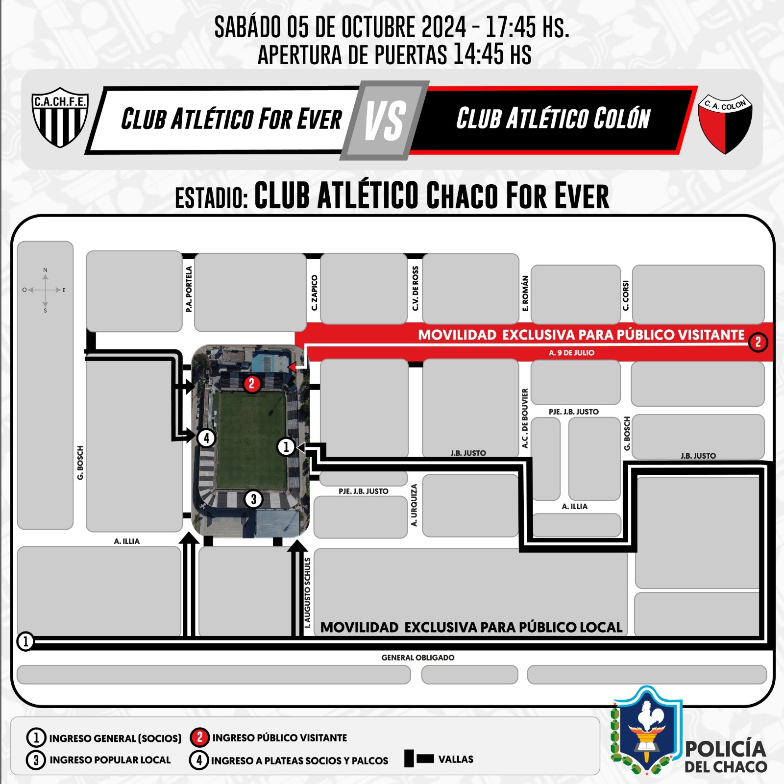 El sábado por la tarde Colón de Santa Fé visitará a Chaco For Ever por la Primera Nacional y los dirigentes chaqueños quieren aprovechar y marcar la diferencia después de declarar el “Día del Club”. Esto permite la presencia de un público visitante en la cancha y a su vez demanda un trabajo policial intensivo de control y diagramación en lo que respecta la situación dentro y fuera del estadio.