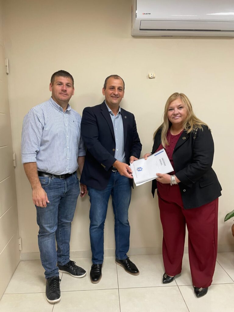 La presidenta del Poder Legislativo, Carmen Delgado, y el diputado Sebastián Lazzarini mantuvieron un encuentro con el comisario general Ricardo Urturi, titular del OCI, quien presentó el documento que resume las acciones de control y transparencia desarrolladas por el organismo durante el último año.
