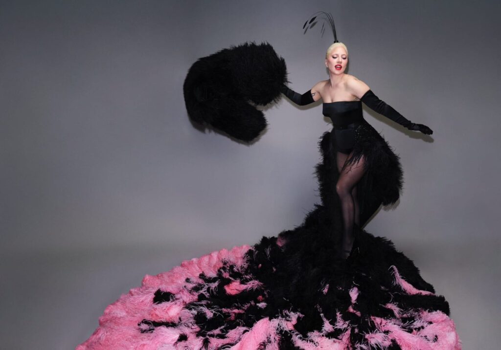 En ese contexto, la artista colaboró con Dior en una sesión de fotos en la que luce trajes personalizados, usando plumas mudadas naturalmente. Asimismo, la artista ensayó las coreografías para su performance.