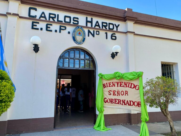 El gobernador agradeció a los docentes de la EEP Nº16 por el compromiso en la enseñanza. La institución alberga a 317 alumnas y alumnos, quienes comparten el edificio con la Escuela Para Adultos Nº 15 que tiene un total de 78 estudiantes. “La educación tiene sentido si los chicos aprenden y los chicos aprenden cuando hay docentes apasionados y comprometidos”, resaltó y advirtió que la tarea de educar y recuperar valores como el respeto y la solidaridad, hay que realizarla entre todos.