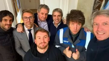 El mandatario felicitó a Luis Caputo y publicó una foto junto al equipo económico, en la que aparece vestido con el mameluco de YPF.