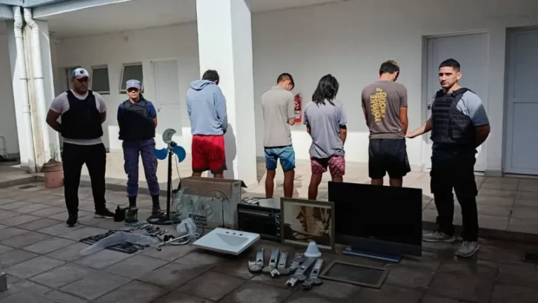 El operativo se realizó alrededor de las 12:30 y estuvo a cargo de efectivos de la Comisaría local, quienes sorprendieron a los sospechosos trasladando varios objetos cuya procedencia no pudieron justificar. Entre lo incautado se encontraron un televisor de 29 pulgadas, un horno eléctrico, un ventilador de pie, una pileta plástica, utensilios de cocina, perchas y partes de una escalera de aluminio.