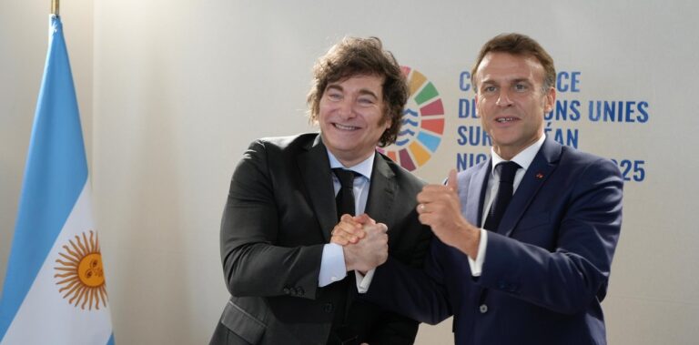 El mandatario asistió al foro climático que se desarrolla en Niza, del 9 al 13 de junio, donde se saludó con visible afecto con su par galo, con quien mantiene un vínculo aceitado pese a las diferencias ideológicas. Lo acompañaron el diputado del PRO Fernando Iglesias, el canciller Gerardo Werthein y el embajador de Argentina en Francia, Ian Sielecki.