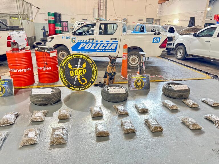 La Policía del Chaco, informó que en el marco de las políticas de seguridad impulsadas por el Gobernador Leandro Zdero y el ministro Hugo Matkovich, fuerzas antidrogas incautaron cerca de 27 kilos de marihuana ocultos en las ruedas de un vehículo remolcado. El operativo fue supervisado por las altas autoridades policiales.