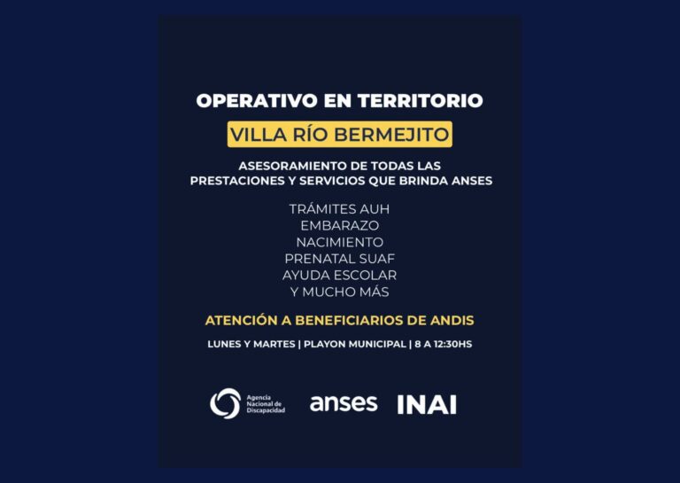 Este lunes y martes, en el playón municipal, de 8 a 12:30 hs, se llevará a cabo un operativo integral de asesoramiento y atención para vecinos de Villa Río Bermejito.