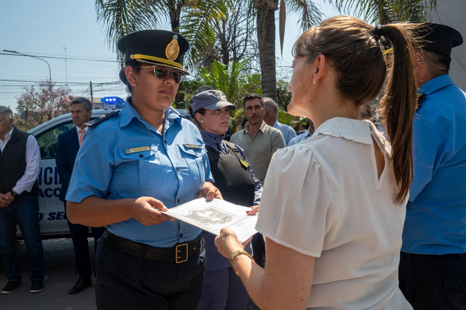 A su turno, la Cabo Primero de la Policía local, Mónica Charotoño, expresó su gratitud ante la entrega de nuevos móviles y los nuevos chalecos para el personal femenino. “Estamos agradecidos con el señor gobernador y el ministro por estas entregas, algo que era muy requerido por nosotros”, manifestó.