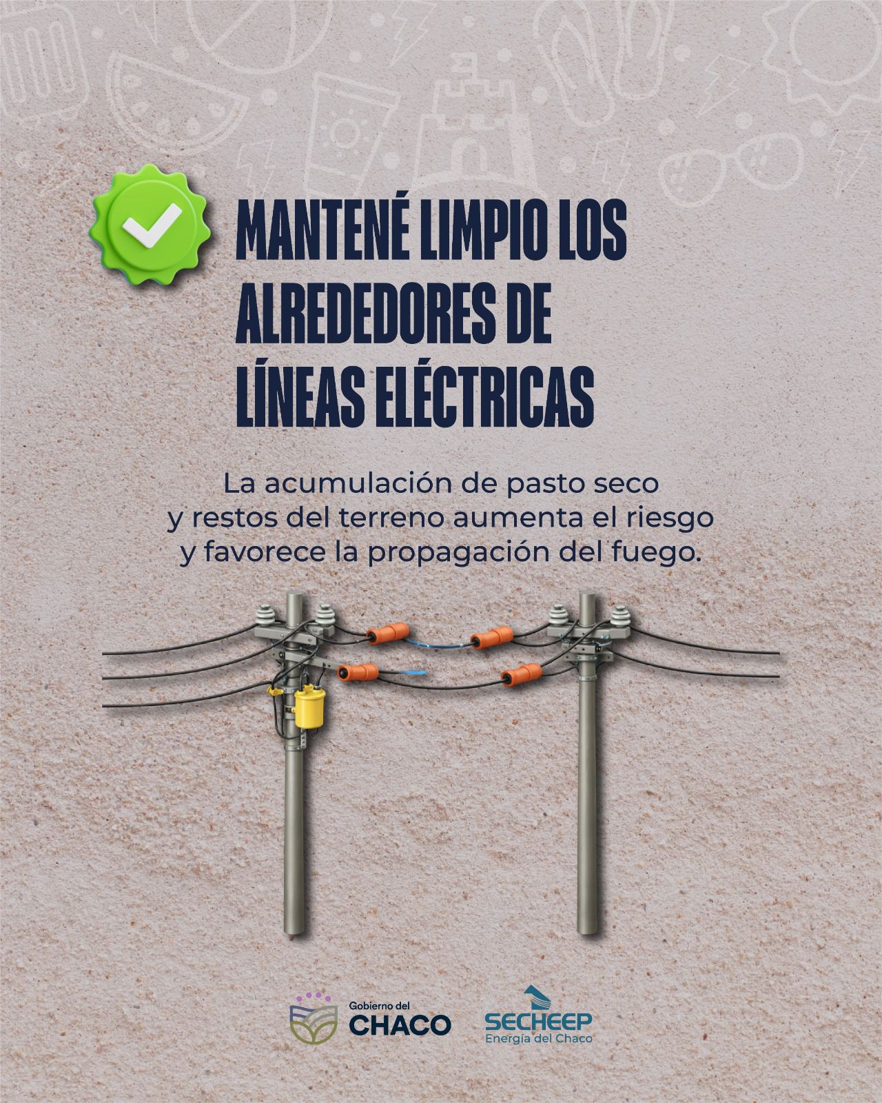 Con la llegada de las altas temperaturas, los incendios rurales se convierten en uno de los principales riesgos que afectan el normal funcionamiento de la red eléctrica en la provincia del Chaco. Por ello, SECHEEP insiste a la comunidad en extremar los cuidados y evitar prácticas que puedan provocar fuego cerca de la infraestructura eléctrica.