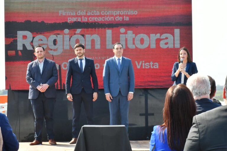 El gobernador Gustavo Valdés firmó este jueves junto a su par de Santa Fe, Maximiliano Pullaro un acta de compromiso para la creación de la Región Litoral, iniciativa que permitirá concretar políticas públicas sobre los intereses comunes de ambas provincias. Durante el acto, realizado en la localidad santafesina de Villa Ocampo, también se firmó un acta de hermanamiento entre esta ciudad y la correntina Bella Vista.