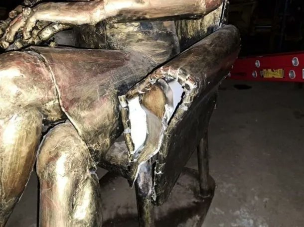 Tras los daños a la escultura, las autoridades municipales de la ciudad decidieron retirarla del espacio público donde se encontraba y llevarla a un taller de herrería para poder realizar las reparaciones correspondientes.