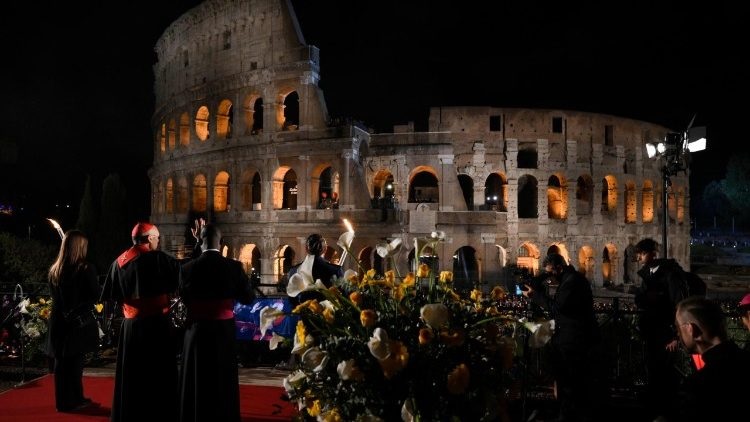 En la tarde del viernes 18 de abril, unos 20.000 fieles vivieron este momento intenso y espiritual de conmemoración de la Pasión de Cristo, meditando sobre las principales etapas del sufrimiento del Señor que condujeron a su crucifixión. La oración fue guiada por el Cardenal Baldassare Reina, Vicario General de Su Santidad para la Diócesis de Roma.