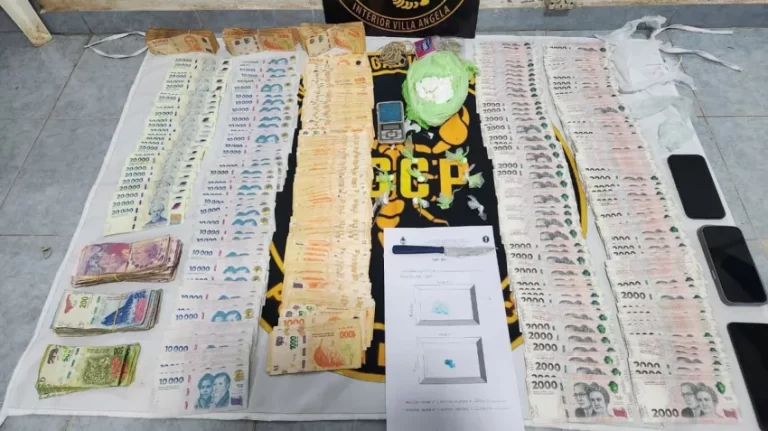 En un operativo realizado en la madrugada de este viernes, la Policía de Chaco desarticuló un presunto centro de venta de drogas en el barrio Mocoví de Villa Ángela. El allanamiento fue ejecutado por efectivos de la División Operaciones Drogas Interior Villa Ángela y culminó con la detención de un hombre de 44 años y una mujer de 22, además del secuestro de cocaína, dinero y otros elementos de interés para la causa.